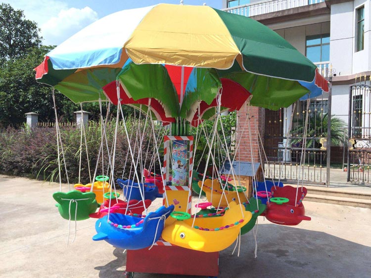 旋轉(zhuǎn)飛魚也叫兒童秋千魚,是以魚型座位組成的秋千狀類轉(zhuǎn)馬型兒童機械游樂設(shè)備。兒童喜愛的旋轉(zhuǎn)小飛魚廣場游樂設(shè)備推薦